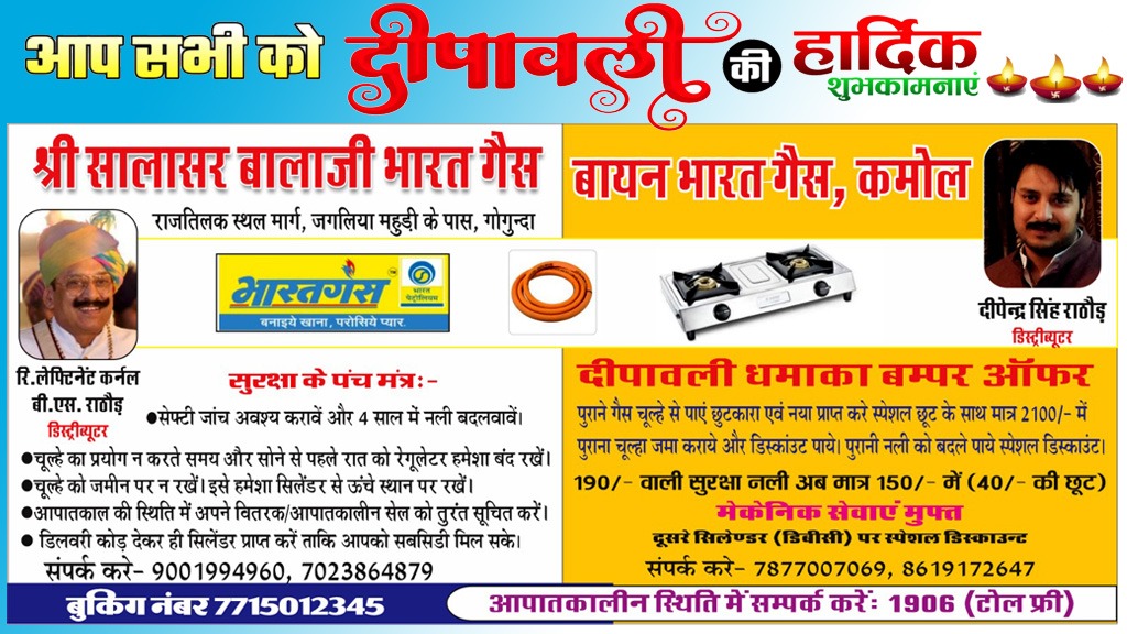 उदयपुर जिले के सायरा थाना क्षैत्र के सुआवतो का गुड़ा में दीपावली के दिन सोमवार को एक दर्दनाक हादसा सामने आया। सूरत प्रवासी बसंती लाल